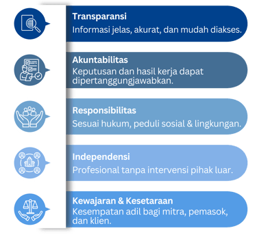 Menempatkan kebutuhan klien sebagai prioritas utama dengan menjaga komunikasi yang transparan, pelayanan responsif, dan hasil kerja yang sesuai harapan.Sustainability & Tanggung Jawab Sosial